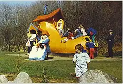 The Den and the Glen (formerly known as Storybook Glen) is a children's park in Maryculter, Scotland, opened in 1984, near the city of Aberdeen.[1][2] It is best known for its deformed and off-looking models of various fairytale and nursery rhyme characters, as well as some more modern characters such as The Simpsons, Teletubbies, Shrek, Teenage Mutant Ninja Turtles, Fireman Sam, Wallace and Gromit, Thomas the Tank Engine, Postman Pat, In the Night Garden..., and countless others. The most well known statue is of Barney The Dinosaur, which became an internet meme through an image with the caption "cha cha real smooth". There are also murals too, which are actually cutout boards featuring Superman, E.T. and Garfield. It has been rated a 4-star visitor attraction by the Scottish Tourist Board.