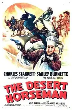 The Desert Horseman is a 1946 American Western film directed by Ray Nazarro and written by Sherman L. Lowe. The film stars Charles Starrett, Adele Roberts, Walt Shrum and Smiley Burnette. The film was released on July 11, 1946, by Columbia Pictures.[1][2][3] This was the fourteenth of 65 films in the Durango Kid series.[4]