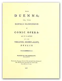 6. ^ a b Troost, Linda V. 'The Characterizing Power of Song in Sheridan's The Duenna,' in Eighteenth Century Studies Vol. 20