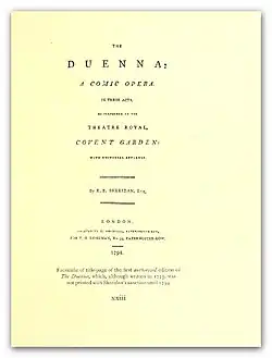 The Duenna is a three-act comic opera, mostly composed by Thomas Linley the elder and his son, Thomas Linley the younger, to an English-language libretto by Richard Brinsley Sheridan. At the time, it was considered one of the most successful operas ever staged in England,[1] and its admirers included Samuel Johnson, William Hazlitt and George Byron (the latter called it "the best opera ever written"[2]).