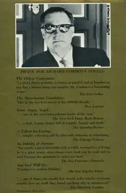 [Condon] has momentarily forgotten Hollywood's first law: Scratch the tinsel and find the real tinsel beneath. Yet Condon is always the working entertainer. Even with a flop, he follows the Henry James dictum that the novel "amounts to never forgetting, by any lapse, that the thing is under a special obligation to be amusing."[5]