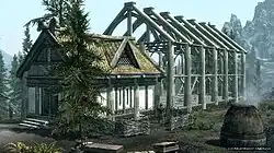 Hearthfire allows the player character to purchase a plot of land and build their own home from raw materials such as lumber and clay, with the option of adding features such as greenhouses, bee hives, and alchemy and enchanting facilities. There are three homesteads the player can build: Lakeview Manor (east of Falkreath), Windstad Manor (northeast of Morthal), and Heljarchen Hall (south of Dawnstar). Each one requires the player to have earned the respect of the Jarl in charge of the hold at the time and become Thane, then purchase the land from the Jarl or their steward. There are options to hire stewards to look after the home, carriage drivers for quick transportation, and a personal bard, along with animals, including horses for easier transport when overloaded with various items. Hearthfire also introduces the option to raise a family by adopting children.[1] In addition, previously bought pre-built homes, such as Proudspire Manor in Solitude or Breezehome in Whiterun, can be altered to have a children's bedroom added into them.