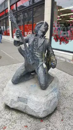 5. ^ "Jimi Hendrix statue defaced in graffiti spree". MyNorthwest.com. September 19, 2013. Retrieved January 27, 2023.