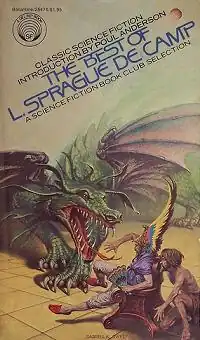 ![]() Cover art from first paperback edition of The Best of L. Sprague de Camp (Ballantine Books, 1978), showing a scene from "The Emperor's Fan" | |||