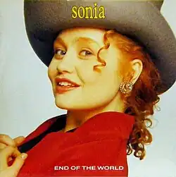 In 1990, English singer Sonia covered "End of the World". The fifth and final single from her debut album, Everybody Knows, it reached number 18 in the UK,[12] the same chart position as the original, and number 18 too in Ireland.[13] The single's B-side "Can't Help the Way That I Feel" also appeared on Sonia's debut album. This was her final single with Stock Aitken Waterman.