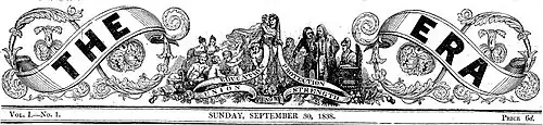 The Era was established in 1838 by a body of shareholders consisting of licensed victuallers and other people connected with their trade. The journal was intended to be a weekly organ of the public-house interest, just as the Morning Advertiser was then its daily organ. In the first two or three years of its existence, its political stance was broadly Liberal. Its first editor, Leitch Ritchie, proved too liberal for his board of directors, and in addition to editorial clashes, the paper was a commercial failure. Ritchie was succeeded by Frederick Ledger, who became sole proprietor as well as editor. He edited the paper for more than thirty years, gradually changing its politics from Liberalism to moderate Conservatism. Politics, however, ceased to be a major concern of The Era. Its great features after it came into the hands of Ledger were sport, freemasonry and the theatre. A contemporary observer remarked, "To the latter subject it has always devoted a very large part of its space. In relation indeed to the amount and accuracy of its theatrical intelligence, it far surpasses every other weekly journal."[1]
