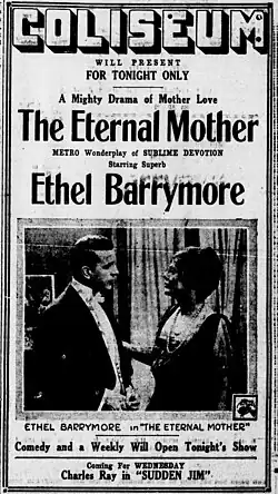 The Eternal Mother is a surviving 1917 American silent drama film directed by Frank Reicher and stars Ethel Barrymore. The picture is taken from a novel, Red Horse Hill, by Sidney McCall, an alias for Mary McNeill Fenollosa.[1]