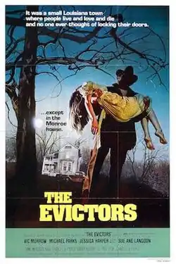 The Evictors is a 1979 American crime-horror film written and directed by Charles B. Pierce, and starring Vic Morrow, Michael Parks, and Jessica Harper. A period piece set in 1942, it follows a couple who are terrorized by a mysterious man on the property of their new home in rural Louisiana, which is the site of various unsolved homicides from years prior. Released in April 1979, it was one of the last films distributed by American International Pictures.