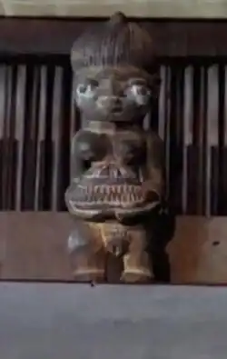 In the present day of The Figurine world, Mona is still disturbed after getting to know about the folktale of the statue her husband has placed in their home;[43] Sakari Maatta interprets this to mean that even though such old myths and beliefs have not been given too much weight in the film's society, they still live in the subconscious of the people.[41] Ayo Stephens cited that Nigerian culture is sold to the audience throughout the film, giving an example of the scene where Junior (Tobe Oboli) (aged 7) is instructed by her mother, Mona to prostrate and greet his father both in Yoruba and Urhobo, which are respectively his father's and mother's dialects.[43]