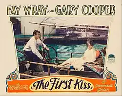 The First Kiss is a 1928 American sound romantic drama film directed by Rowland V. Lee and starring Fay Wray and Gary Cooper.[1] While the film has no audible dialog, it features a synchronized musical score with sound effects and a theme song. Based on the short story Four Brothers by Tristram Tupper, the film is about a Chesapeake Bay fisherman who turns to pirating in order to be rich enough to marry a society girl.