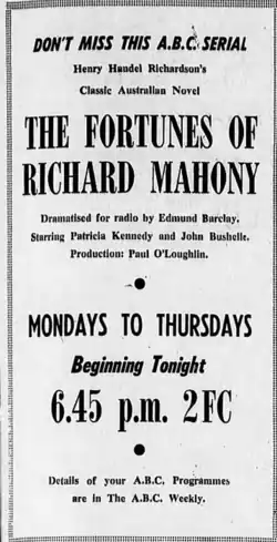 - ^ "Richard Mahony as A.B.C. Serial", ABC Weekly, 11 (29), Sydney, 16 July 1949, retrieved 24 August 2023 – via Trove