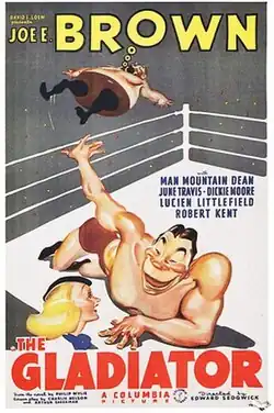 The Gladiator is a 1938 American comedy and fantasy film starring Joe E. Brown, Dickie Moore and June Travis. The movie is an adaptation of Philip Gordon Wylie's 1930 novel Gladiator, which is often credited with having influenced the creation of Superman.[1]