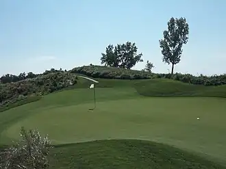 The golf course has four distinct sections, as noted on the scorecard.[6] The first six holes are inland holes; holes 7, 8, and 9 play through dunes, as they are the closest holes to Lake Michigan. The first four holes on the back nine are woodlands holes; and holes 14-18 are river holes, playing on or near the Paw Paw River.