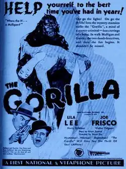 The Gorilla is a 1930 American pre-Code mystery-comedy film produced by First National Pictures, distributed by Warner Bros., and directed by Bryan Foy. It stars Joe Frisco, Harry Gribbon, Walter Pidgeon and Lila Lee, and is based on the 1925 play of the same name by Ralph Spence. The 1930 film version was a sound remake of the 1927 silent version, also produced by First National Pictures.[1]