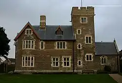 Various additions were made by Edward Pugin, including the entrance gates and the long porch.[3]
