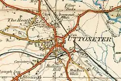 The Uttoxeter Canal previously terminated in The Heath; it was completed in 1811 and closed in 1849. The area around the canal basin is now known as The Wharf.