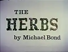 The Herbs is a television series for young children made for the BBC by Graham Clutterbuck's FilmFair company. It was written by Michael Bond (creator of Paddington Bear), directed by Ivor Wood using 3D stop motion model animation and first transmitted from 12 February 1968 in the BBC1 Watch with Mother timeslot. There were 13 episodes in the series, each one 15 minutes long.[2]