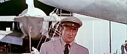 After Wayne and Robert Fellows had formed Wayne-Fellows Productions in 1952, the duo worked on several films including Big Jim McLain, Plunder of the Sun, and Island in the Sky.[6] In 1953, director William Wellman was releasing Island in the Sky when he learned that his screenwriter Ernest Gann was writing another aviation story. Gann shared the story with Wellman, and the director offered to make a sales pitch. Wellman relayed the story of The High and the Mighty to Wayne-Fellows Productions. Wayne purchased the story on the spot, agreeing to give Gann $55,000 for the story and the screenplay plus 10 percent of the film's earnings. Wayne also agreed to give Wellman 30 percent of the earnings to be the film's director, based on the condition that The High and the Mighty would be filmed in CinemaScope.[7] It was a widescreen projection process that involved using an anamorphic lens to widen the image produced by regular 35 mm film. Wellman's experience was that the CinemaScope camera was "bulky and unwieldy", and the director preferred to station the camera in one place.[8][9] Since The High and Mighty was set on an airliner with cramped quarters, Wellman did not need to worry about flexibility in composing shots.[8] He hired William H. Clothier,[10] with whom he had worked on many films, as cinematographer (assigned to the second unit sequences, only; Archie Stout, with whom Wayne had a long association, had already been assigned as primary cinematographer). Ernest K. Gann wrote the original novels on which both films were based, along with both screenplays, of which both films, including dialogue, were closely adapted.