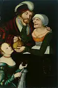 The Ill-Matched Couple is a 1532 oil painting by the German Renaissance painter Lucas Cranach the Elder. It was owned by Maximilian I of Bavaria until 1632, when Swedish troops captured it in a raid on Munich and thus is now in the Nationalmuseum, Stockholm.[1]