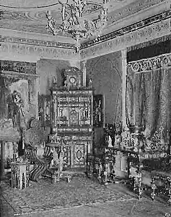 The dedication of the Matejko monument in St. Mary's Church occurred on May 12, yet the planned dedication of Matejko's house did not take place.[9] This event was rescheduled for May 20. Notable attendees included Bishop Jan Puzyna, President Friedlein, Court President Czyszczan, National Museum Director Władysław Łuszczkiewicz, AU Secretary Stanisław Smolka, Kraków Conservator Stanisław Tomkiewicz, Professors Jerzy Mycielski and Piotr Bieńkowski from the Jagiellonian University, and Jan Stanisławski and Józef Unierzyski (Matejko's son-in-law) from the School of Fine Arts, as well as Secretary Gorzkowski. Bishop Puzyna consecrated the house, beginning from Matejko's bedroom and proceeding through the salon, dining room, and office, following a guided tour by M. Sokołowski. Upon the conclusion of the ceremony, attendees signed the commemorative guestbook.[13]