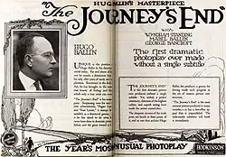 The Journey's End is a 1921 American silent drama film directed by Hugo Ballin and starring Mabel Ballin, George Bancroft and Wyndham Standing.[1]