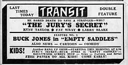 Newspaper advertisement for The Jury's Secret and Empty Saddles (1936)
