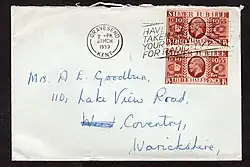![]() Silver Jubilee 1.5d x 2 on cover 1959 Gravesend Kent | |