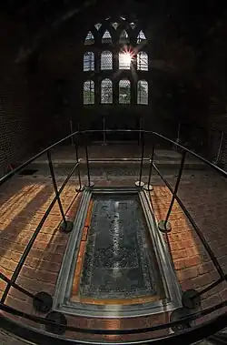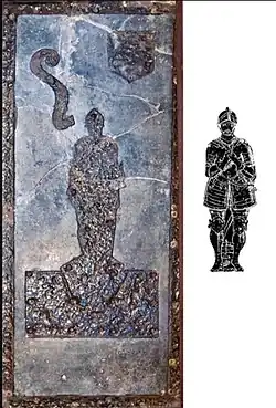 5. ^ a b c Oster, Sandee; Phys.org. "New research reveals that America's oldest tombstone came from Belgium and belonged to an English knight". phys.org. Retrieved 2024-12-22.