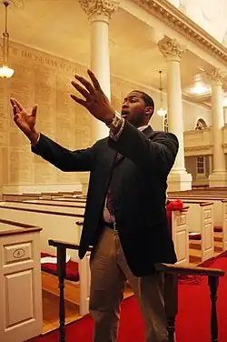 Kuumba continues to distinguish itself as more than a singing group. While the political climate of the organization has changed on Harvard's campus, the organization maintains its role as a safe space for Black students on campus, responding to inequality issues as they arise. For instance, in 2002, members of Kuumba Singers protested comments made by a Harvard professor concerning the term of ebonics.[7] While the organization is not exclusively Black in its membership, the mission of expressing Black creativity and spirituality remains at the center of all that the group does.[1]