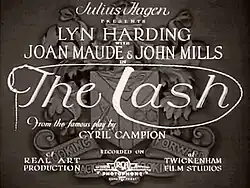 The Lash is a 1934 British drama film directed by Henry Edwards and starring Lyn Harding, John Mills and Leslie Perrins.[1] It was based on a play of the same name by Cyril Campion.[2] A brutish millionaire horsewhips his dissolute son.[3] The film was made as a quota quickie by Twickenham Studios, one of the largest producers of Quota films.[4]