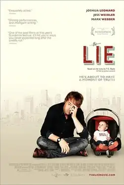 The Lie is a 2011 American drama-comedy film, directed by Joshua Leonard, from a screenplay by Leonard, Jess Weixler, Mark Webber, and Jeff Feuerzeig. It is based upon a short story of the same name by T. Coraghessan Boyle that was printed in The New Yorker.[1] It stars Leonard, Weixler, Webber, Kelli Garner, Jane Adams, Alia Shawkat, Gerry Bednob, Holly Woodlawn, Kirk Baltz, Tipper Newton and Violet Long.