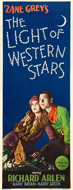 The Light of Western Stars is a 1930 American pre-Code Western produced and distributed by Paramount Pictures. It had two directors, Otto Brower and Edwin H. Knopf. This film is the third filming of Zane Grey's 1914 novel, The Light of Western Stars. Richard Arlen and Mary Brian starred. Previously filmed by Paramount as a silent in 1925.[1][2]