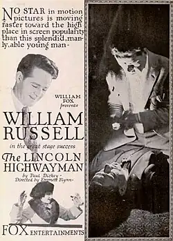 The Lincoln Highwayman is a 1919 American silent mystery film directed by Emmett J. Flynn, and starring William Russell, Lois Lee, Frank Brownlee, Jack Connolly, and Edward Peil Sr. The film was released by Fox Film Corporation on December 28, 1919.[1][2][3]