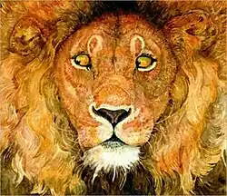 This book is unusual in that it does not have any text on its front dust cover, just the picture of the lion, though this is something that this book's publisher had done before.[1][5][8] This back cover features the mouse, such that when the book is opened the mouse and the lion look at each other.[5][8] The events of the story further the personality traits shown during the course of the story; the lion is powerful while the mouse is curious and alert.[9] These personalities are shown through the other animals' body parts that are illustrated in close-up.[10]