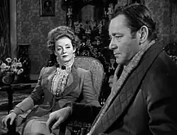 Davis and Wyler frequently fought during filming, about everything from her appearance (Wyler thought she looked like a Kabuki performer, but Davis wanted to look older than her age as the part was written for a 40-year-old) to the set design (which Davis thought was far too opulent for a family supposedly struggling financially) to her interpretation of the role (Wyler wanted a more feminine and sympathetic Regina, akin to Tallulah's interpretation). Davis had yielded to Wyler's demands during production of The Letter, but this time she held her ground. Not helping the situation was the fact Los Angeles was experiencing its worst heat wave in years, and the temperature on the soundstages regularly rose above 100 degrees. Davis finally walked off the picture. "It was the only time in my career that I walked out on a film after the shooting had begun," she later recalled. "I was a nervous wreck due to the fact that my favorite and most admired director was fighting me every inch of the way ... I just didn't want to continue."[5] The actress retreated to her rented house in Laguna Beach and "flatly refused to come back to work. It took a little courage, to say the least. Goldwyn had it in his power to sue me for the entire cost of the production."[5] A week later she returned to the set after rumors she would be replaced by Katharine Hepburn or Miriam Hopkins began to circulate, although Goldwyn was not about to bear the expense of scrapping all the footage with Davis and refilming the scenes with a new actress.[7] Even though the film was a critical and commercial success and nominated for nine Academy Awards, she and Wyler never worked together again.[4][5][7] The film premiered at Radio City Music Hall in New York City. The New York Times reported it was seen by 22,163 persons on its opening day, setting what was then an all-time attendance mark for a normal opening day at the theatre.[9]
