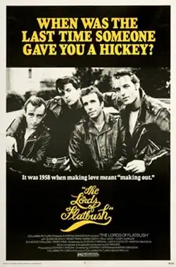The Lords of Flatbush (stylized on-screen as The Lord's of Flatbush) is a 1974 American comedy film directed by Martin Davidson and Stephen F. Verona. The film stars Sylvester Stallone, Perry King, Paul Mace, Henry Winkler, and Susan Blakely. Stallone was also credited with writing additional dialogue. The plot is about street teenagers in leather jackets from the Flatbush neighborhood of Brooklyn, New York.[3] The movie, along with American Graffiti, the television hit Happy Days, the musical Grease and its film adaptation, and novelty rock act Sha Na Na was part of a resurgence in popular interest in the '50s greaser culture in the 1970s.[4]