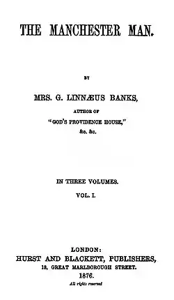 The Manchester Man is a novel by the British writer Isabella Banks. It was first published in three volumes in 1876 under her married name, Mrs G. Linnæus Banks. The story follows the life of a Manchester resident, Jabez Clegg, during the nineteenth century and his rise to prosperity in the booming industrial city. It depicts a number of real historical events such as the Peterloo Massacre.[1]