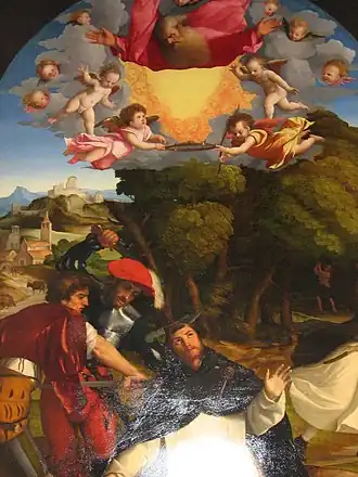 The Martyrdom of Saint Peter Martyr is an oil-on-panel painting created c. 1526–1528 by the Italian Renaissance painter Palma Vecchio, now in the Museo d'arte sacra San Martino in Alzano Lombardo.[1]