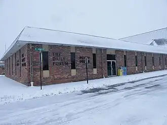 The paper's office from 1941 to 1971[11] was just off the Nodaway County Square at 414 North Main. In 1971 they moved to a location on South Main. On August 31, 2011, the wall of the original North Main building (which had been taken over by a bar called The Pub) collapsed.[12]