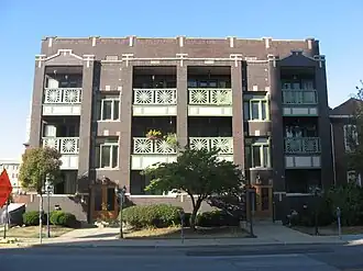 The Mayleeno is a historic apartment building located immediately behind the Athenæum (Das Deutsche Haus) at Indianapolis, Indiana. It was built in 1914, and is a three-story, U-shaped, brick and limestone building reminiscent of the Arts and Crafts movement. It features screened balcony porches on the front of each apartment unit.[2]: Part 2, p. 36–37