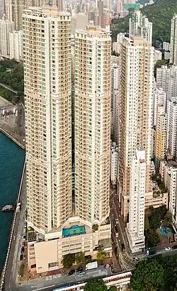 The Merton (Chinese: 泓都) is a high-rise development located in Kennedy Town supplying 1,182 units in total,[1] Hong Kong. The complex consists of three towers. The Merton 1 rises 59 floors and 197 metres (646 ft),[2][3] and stands as the 60th-tallest building in territory. The Merton 2 and The Merton 3 rise 51 floors and 180 metres (591 ft),[3] and stand as the 100th-tallest buildings in the territory; the two structures are tied in rank with the Sham Wan Towers and Liberté 5 and 6. The complex, composed entirely of residential units, was designed by architectural firm Ronald Lu & Partners and developed by New World Development.[2] Construction began in 1998 and completed in 2005.[3]