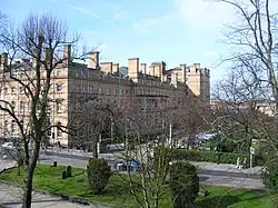 The second Royal Station Hotel opened on 20 May 1878.[2] Designed by architect William Peachey of the North Eastern Railway,[3] the hotel was an integral part of the new station. As the North Eastern Railway Company's flagship hotel, it was managed directly by the railway.[5] It featured elegant, high-ceilinged banqueting rooms and 100 large bedrooms costing 14 shillings a night. It was built by Lucas Brothers.[6]