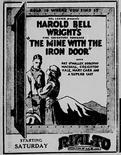 The Mine with the Iron Door is a 1924 American silent Western film directed by Sam Wood and produced by Sol Lesser. The film is based on the novel of the same name by American author Harold Bell Wright that was published in 1923.[1]