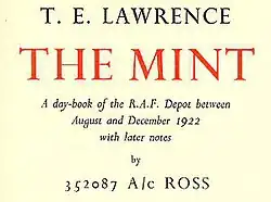 The Mint is a book written by T. E. Lawrence[a] and published posthumously in 1955. It describes his time in the Royal Air Force, working, despite having held senior rank in the army (colonel), as an ordinary aircraftman, under an assumed name, 352087 Ross.