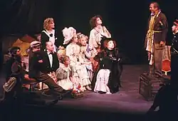 Company designers were Ron Placzek (scenery), Heidi Hollman (costumes), Mal Sturchio (lighting), and Rob Gorton (sound).[17] The productions were initially presented at a small 70-seat Off-Off-Broadway theater[18] at the Real Stage Acting School[17] on West 46th St. (the building was then owned by the Local One Stage Hands Union).