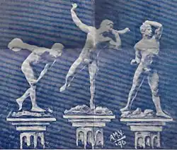 The Entr'acte said of this new routine, "An absolutely original athletic act is given by the Montague Brothers. Their performance is entitled 'The Sculptor's Dream' and provides the most original setting we have ever seen, being athletic and at the same time effective when it comes to feats of strength pure and simple. Their work is simply amazing."[3] The sculptor was played by Edwin John Woollaston, the duo's older brother.