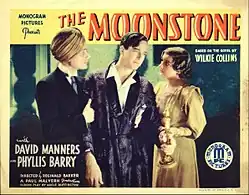 The Moonstone is a 1934 American mystery film directed by Reginald Barker and starring David Manners, Phyllis Barry, Gustav von Seyffertitz and Jameson Thomas. It is an adaptation of the 1868 novel The Moonstone by Wilkie Collins. The film retains the book's British location, but uses a contemporary 1930s setting rather than the Victorian era of the original. It is one of three film versions of the novel, which include silent versions in 1915 and 1909, although a number of television and radio adaptations have been made.