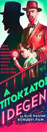 The Mysterious Stranger (Hungarian: A titokzatos idegen) is a 1937 Hungarian crime film directed by Endre Somló and starring Tivadar Uray, Zoltán Várkonyi and Gyula Gózon.[1] [2] It was shot at the Hunnia Studios in Budapest. The film's sets were designed by the art director István Szirontai Lhotka.