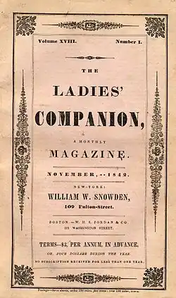The Ladies' Companion, November, 1842, Vol. 18, No. 1, New York.