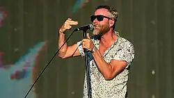 The National is an American rock band from Cincinnati, Ohio, formed in Brooklyn, New York City, in 1999.[1] The band consists of Matt Berninger (vocals), twin brothers Aaron Dessner (guitar, piano, keyboards) and Bryce Dessner (guitar, piano, keyboards), as well as brothers Scott Devendorf (bass) and Bryan Devendorf (drums). During live performances the band is joined by longtime touring members Ben Lanz (trombone, synthesizers) and Kyle Resnick (trumpet, keyboards, backing vocals). Carin Besser, the wife of Berninger, is not a band member but has written lyrics for the band alongside her husband since its 2007 album Boxer.[2][3]